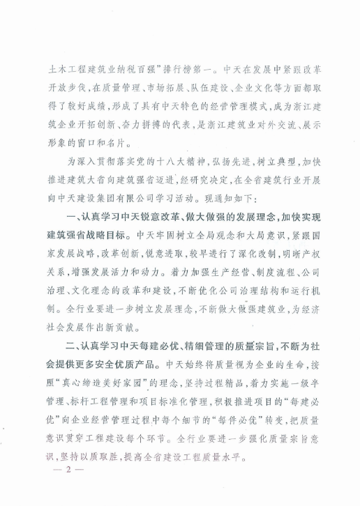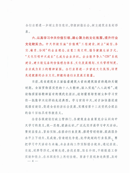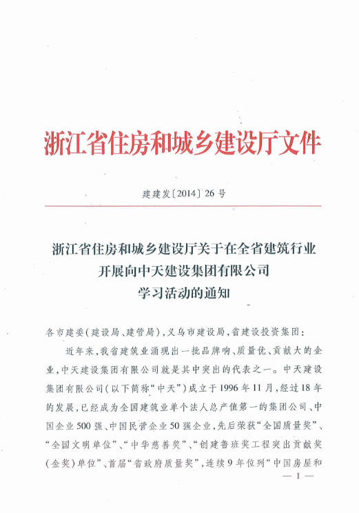 《浙江省住房和城乡建设厅关于在全省修建行业开展向PA视讯(中国区)官方网站建设集团有限公司学习运动的通知》